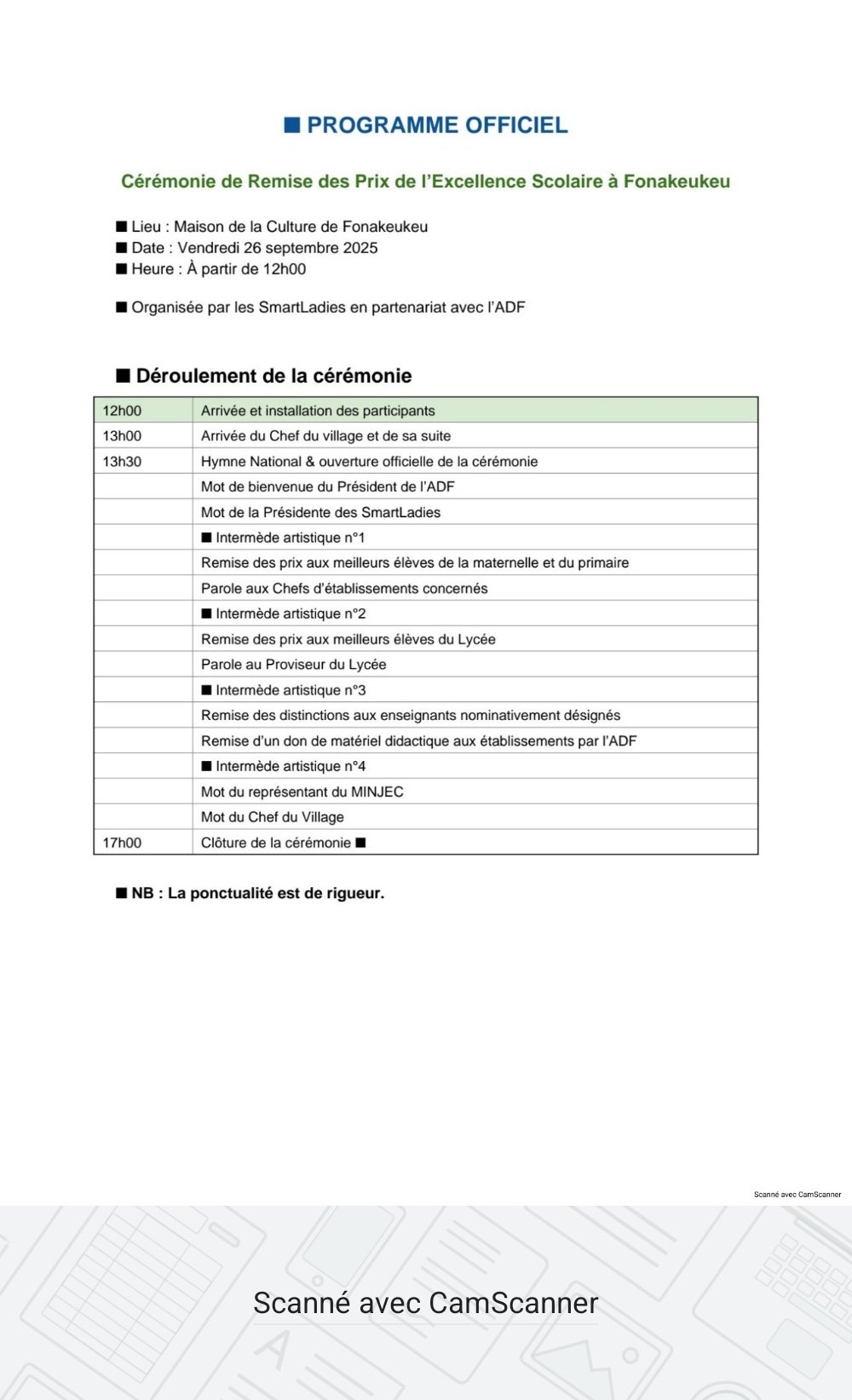 Cérémonie d'excellence scolaire à Fonakeukeu